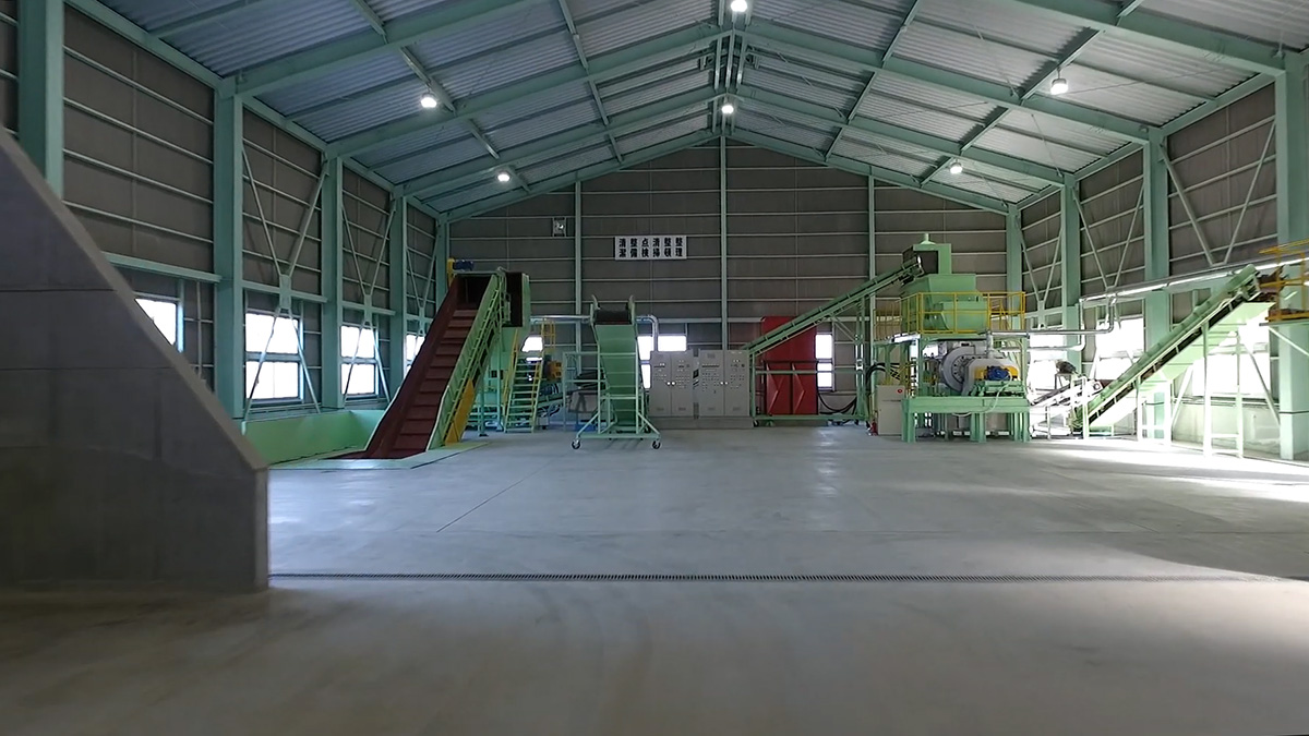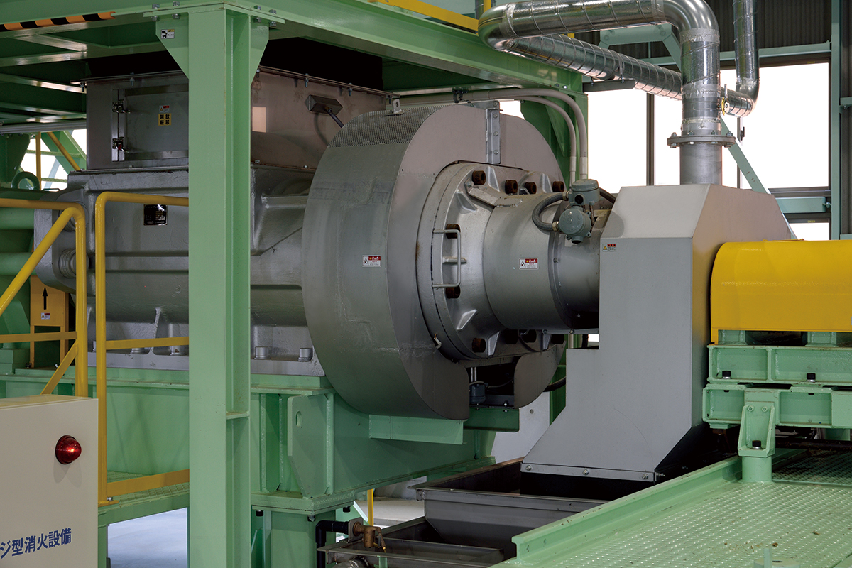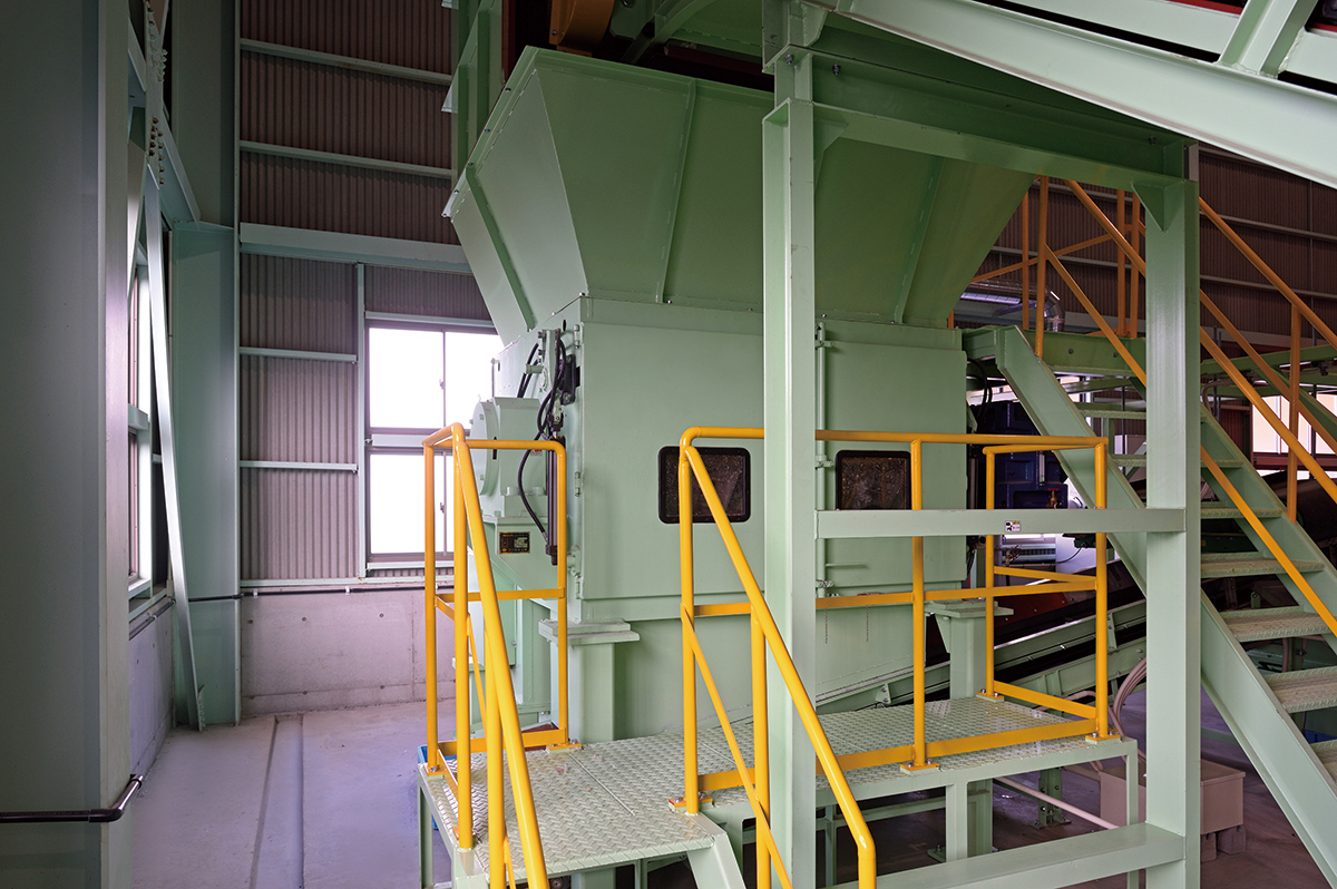 破砕機回転ドラム式の破砕機で廃棄物を破砕し、2~5cmのサイズにまで小さくします。