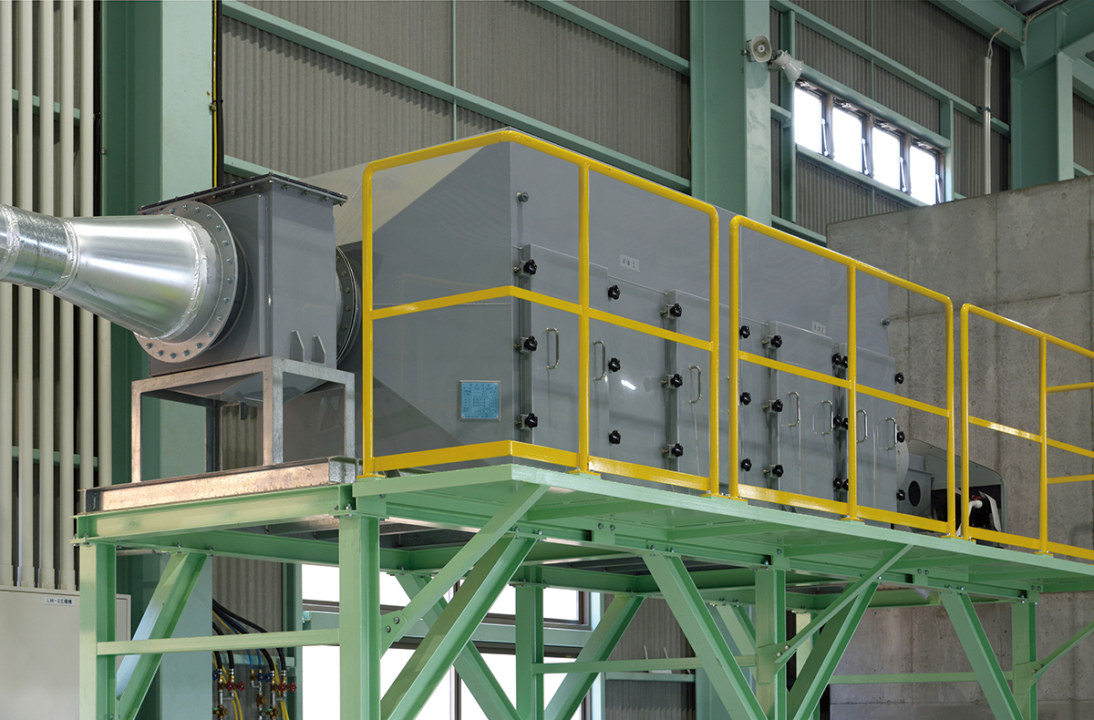 集じん脱臭機(活性炭槽)減容物から出るガスや匂いを活性炭に吸着させて土壌に悪影響を及ぼさない状態にします。